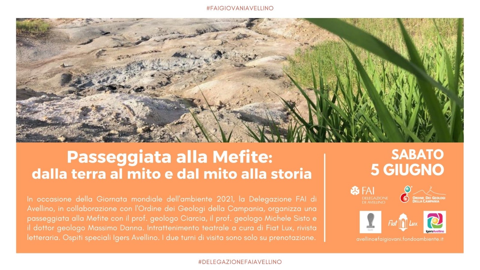 La Delegazione FAI Avellino, con la collaborazione e il supporto dell’Ordine dei Geologi della Campania, dell'Amministrazione Comunale e della Pro Loco Ansanto di Rocca San Felice e di Fiat Lux rivista letteraria, in occasione della “Giornata Mondiale dell’Ambiente” che si celebra il 5 giugno 2021 organizza una passeggiata alla scoperta della Mefite di Rocca San Felice: sito geologico unico al mondo, ma anche luogo intriso di storia e di fascino.