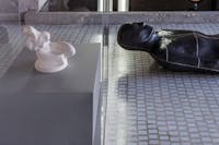 Veduta dell’installazione. Lucio Fontana / Antony Gormley, Negozio Olivetti, Venezia, 2022. Foto: Ela Bialkowska, OKNO STUDIO