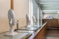 La mostra si inserisce perfettamente nello spazio progettato da Carlo Scarpa, dal punto di vista estetico, funzionale e di significato. La gran parte delle opere è disposta sui tavolini e sulle mensole che un tempo sorreggevano i calcolatori dell’azienda Olivetti, in un’alternanza voluta tra le sculture e le macchine da scrivere ancora conservate ed esposte. È una scelta precisa del FAI volta a tutelare e valorizzare questo luogo tanto nell’architettura quanto nel suo spirito, cioè rispettando la sua identità storica di showroom, ma anche la sua originale vocazione di spazio intriso di cultura, e capace di trasmettere cultura.