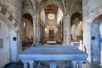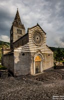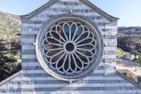 La Basilica dei Fieschi, è unica al mondo per molti motivi che qui non possiamo riassumere per brevità e quindi invitiamo il lettore a documentarsi (facilmente vista l’innumerevole quantità di dati che si dispone). Ci soffermiamo su un particolare che come detto è solo uno tra i tanti incredibili particolari di questa Basilica: il materiale di cui è fatta gran parte della Basilica, l’ARDESIA o comunemente detta la pietra di LAVAGNA dove anticamente molto prima dei Romani l’uomo estraeva questa pietra famosa per le sue proprietà. L’ARDESIA è una pietra particolare le cui proprietà sono conosciute dall’uomo nei millenni e grazie alla sua elasticità, resistenza alla flessione, ridotta porosità, non geliva e indeformabilità anche se sottoposta a calore (eccezionale resistenza al fuoco dato il bassissimo coefficiente di dilatabilità) ne fa un materiale da costruzione unico al mondo. Nel medioevo gli artigiani conoscevano a fondo queste proprietà a tal punto da erigere questa chiesa che a dispetto dei secoli ( e delle intemperie proprie di questi luoghi) è ancora li con la sua immensa bellezza! Sull’edificio a destra della Basilica c’è una lastra di Marmo che riporta questa iscrizione (che non si poteva mettere sulla facciata della Basilica per ovvi motivi): STET-DOMUS-HAEC DONEC-BIBERIT FORMICA-MARINAM che significa “resista questo edificio fino a quando la formica non avrà bevuto tutta l’acqua del mare”. Se poi leggerete la storia di questo borgo e della sua Basilica, dei suoi due PAPI, del contesto storico in cui è stata costruita, capirete tutto l’orgoglio degli artigiani che hanno inciso quella scritta consapevoli di avere in un certo senso “fatto la storia”. A distanza di quasi 800 anni è ancora li maestosa a dispetto di tutti gli eventi anche quelli più catastrofici (la recente tempesta di grandine del 18 Agosto per esempio che ha distrutto il territorio dove si trova, non ha risparmiato nessuna chiesa o casa, eccetto la Basilica)