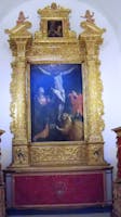 Dalla navata di sinistra si accede all’Oratorio dedicato alla Madonna del Rosario, che conserva una ricca decorazione in stucchi policromi e tracce delle originarie pitture murali, coperte da tempere su carte intelate raffiguranti i Misteri del Rosario