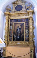 Le tele di Mattia Preti sono incastonate in altari lignei , che in origine erano tombe gentilizie fondate nella seconda metà del secolo XVI dalle famiglie nobili della città nuova di Taverna, in concomitanza con la costruzione della chiesa conventuale di San Domenico. Essi furono in gran parte realizzati (a destra della navata centrale e nelle cappelle della navata laterale a sinistra) nella seconda metà del Seicento, anche se alcuni di essi, risalenti agli anni trenta dello stesso secolo, denotano caratteri stilistici di rimando tardo cinquecentesco, poi compresi nelle cifre stilistiche del barocco meridionale che arricchisce gli stilemi degli attuali altari, le cui cornici accolsero dagli anni 1630 agli anni 1690 le tele dipinte da Gregorio e Mattia Preti.