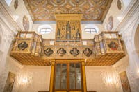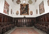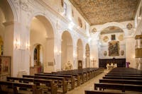 Un meraviglioso soffitto a finti cassettoni e un pregevole organo realizzato da Francesco Ferrazzani nel 1753 in legno intagliato, dipinto e dorato con alcune parti traforate, lasciano il visitatore incantato per la meravigliosa bellezza.
