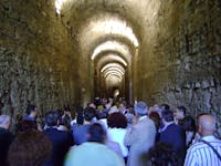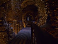Il terzo occidentale della spianata è impostato su un'articolata e spettacolare sequenza di vani voltati di età romana (ne sono stati riconosciuti fino ad ora 180), che si estende per una superficie di circa 16000 mq. La visita si svolge in un suggestivo itinerario sotterraneo, tra storia, leggende e tecnologia antica, culminante nella visione di un raro corredo epigrafico di età romana, tracciato a pennello, a carboncino e a sgraffio sull'intonaco di uno degli ambienti più interni. Le indagini archeologiche avviate lungo la fronte nord-occidentale del complesso hanno inoltre riportato alla luce una fronte monumentale articolata in aule ornate da semicolonne doriche, oggi utilizzata come quinta scenica per spettacoli musicali.