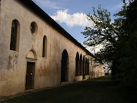 - parte nord: l'estremità della barchessa è terminata da una caratteristica cappella gentilizia, inserita nelle linee della lunga facciata;