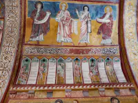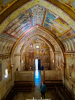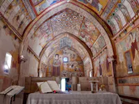L'oratorio di San Pellegrino sorge nella frazione di Bominaco del comune di Caporciano. Gli interni sono interamente coperti da affreschi che, insieme a quelli della vicina chiesa di Santa Maria ad Cryptas a Fossa, rappresentano una testimonianza importante della pittura medioevale abruzzese. L'oratorio, parte di un complesso monastico che comprende anche la vicina chiesa di Santa Maria Assunta, fu probabilmente edificato nel 1263 dall'abate Teodino, come testimonia un'iscrizione sulla parete di fondo dell'oratorio. Carlo Magno dotò la chiesa di possedimenti terrieri e la donò in seguito all'abbazia di Farfa, dalla quale alcuni monaci vennero per fondare una comunità monastica.