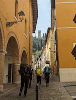 Il Cammino dei Forti è un percorso permanente ad anello lungo circa 120 Km diviso in cinque tappe, è stato ideato dall’associazione “Pranzo al Sacco” ed è volto alla valorizzazione del nostro paese natale, i tre fondatori, Guido Pacella Davìd Dignani e Alessio Ancillani sono infatti di San Severino Marche, si prosegue poi attraversando anche i Comuni di Serrapetrona, Castelraimondo, Gagliole e Matelica. Nel cuore della regione Marche questa esperienza offre, a chi si incammina in questa avventura, un'immersione nella natura, nella storia, nella cultura e nel folklore dell’entroterra marchigiano. Lungo il percorso, gli escursionisti avranno la possibilità di ammirare panorami mozzafiato, attraversare boschi di faggi secolari, scrutare prati infiniti e sempre verdi, scoprire antichi borghi, torri, mura e fortezze, un tempo a difesa di queste zone, oggi a testimoniare la profonda storia del territorio e infine gustare i piatti tipici della cucina locale. I camminatori percorreranno il percorso in cinque diverse tappe, ognuna con le proprie peculiarità e dettagli di bellezza da non perdere; avranno la possibilità di dormire in hotel, agriturismi e B&B convenzionati. Il Cammino dei Forti è un'esperienza indimenticabile che vuol trasmettere l'amore verso la nostra terra, che ogni giorno tocchiamo con mano e dove ogni volta il nostro sguardo si perde e si innamora. Le fortezze poste a difesa del territorio, in epoca medievale, sono le protagoniste di questo cammino; sono otto attrazioni culturali di un valore storico incredibile: la torre degli Smeducci di San Severino Marche, il Cassero di Crispiero, la torre del Cassero a Castelraimondo, la rocca dei Da Varano a Gagliole, il castello di Elcito, la torre di Aliforni, il castello di Serralta e il castello di Pitino, questi ultimi tutti nel comune di San Severino Marche. L’itinerario attraversa anche la riserva del Monte San Vicino e monte Canfaito, dove ha casa il faggio più antico della regione Marche. In questa riserva la natura esprime tutto il proprio splendore con una moltitudine di flora e fauna da scoprire. Chi ama l'avventura all'aria aperta e vuole scoprire la bellezza e la ricchezza di questo territorio ancora poco conosciuto, dove il paesaggio e la cultura si fondono in un connubio perfetto, è il benvenuto. Preparate lo zaino, l’Alta Marca vi aspetta. L’associazione Pranzo al Sacco nasce da una storia di amicizia. Il fondatore Guido Pacella e attuale presidente dell’associazione ha avuto per primo l’intuizione di creare un cammino che potesse valorizzare il territorio, insieme ai due fedeli compagni di merende, Alessio Ancillani e David Dignani, hanno successivamente creato l’associazione e messo in opera il progetto del Cammino dei Forti. Da sempre appassionati di trekking, di natura e innamorati del proprio paese hanno come missione quella di promuovere il Cammino dei Forti per far nascere il concetto di turismo lento in questa parte della regione Marche e in più creare eventi paralleli che possano sensibilizzare alla valorizzazione del territorio e alla riscoperta delle bellezze che ci circondano dando nuova vita anche alla splendida cornice storico culturale che ci circonda.