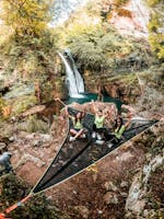 Lo scroscio dell’acqua spumeggiante, che precipita verso il basso, ti pervade non appena si imbocca il sentiero e quando finalmente la si raggiunge si ha un effetto visivo fantastico di luce e fragore.