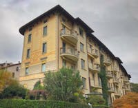 La costruzione è del 1903 ed è stata completamente ristrutturata nell'anno 1999 con l'aggiunta dei balconi rotondi sulla facciata interna al giardino e dei box auto sottostanti il l