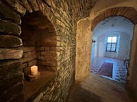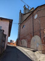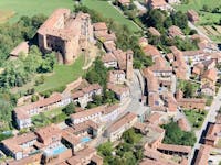 Il castello di Frinco, la cui origine è del XIII secolo, sovrasta con la sua mole il paese. Edificio imponente, ha il lato rivolto a sud-est che avanza con due grandi alti archi a sesto acuto sulla piazzetta della chiesa parrocchiale. Su questo prospetto, articolato in modo complesso da diversi corpi ed altezze, c'è la rampa d'accesso al castello. Dalla piazzetta si giunge ai piedi della grande torre circolare, la quale con il collegato corpo dell'edificio a tre piani costituisce la parte più antica del castello. La torre, posta all'angolo ovest del maniero, presenta il coronamento seghettato e a denti di lupo; si può notare la sua merlatura ghibellina sormontata dal tetto; l'interno ha il soffitto a cupola. Dal cortile inferiore si accede ai locali adibiti un tempo a magazzini sotterranei e a cucine. Nel medioevo fu feudo imperiale, i signori ricevevano l'investitura direttamente dall'Imperatore del Sacro Romano Impero. Tra le famiglie nobiliari che lo abitarono figurano quelle dei Pelletta (1277), dei Turco (1342), dei Mazzetti (1442, prima con il titolo di conti e dal 1733 di marchesi, i quali ottennero ed esercitarono per molto tempo il diritto di Zecca) e degli Incisa di Camerana (1829). Per la sua posizione, sulla linea di confine tra il territorio di Asti e di Casale Monferrato, Frinco fu interessato dalle alterne vicende degli scontri tra Guelfi e Ghibellini e dalle lotte per la successione del Marchesato del Monferrato. Nel XVII secolo il castello fu più volte assediato e il paese saccheggiato dalle truppe francesi che attraversarono questi luoghi alla volta di Torino. Tra il 1915 e il 1918 il castello fu requisito e divenne uno dei più grandi centri di reclusione di prigionieri austro-ungarici. Nel 2016 alla presenza di una delegazione ella Croce Nera austriaca, l'associazione che cura le onoranze e la gestione dei cimiteri di guerra delle vittime austro-ungariche è stata posta una lapide in loro ricordo. Nel 2008 il castello venne venduto a una società immobiliare che verrà dichiarata fallita il 28/6/2012. Il 5 febbraio 2014 crolla rovinosamente sulle case sottostanti un avancorpo del castello. Nel mese di aprile 2015 viene perfezionato il passaggio di proprietà, per mezzo di un’asta fallimentare, ad un antiquario toscano, il quale si impegna a far eseguire i lavori di ristrutturazione. Erige un muro di contenimento che per diversi motivi crollò rovinosamente sulla strada e sul tetto della casa sottostante. Nel 2018 inizia la trattativa per il passaggio di proprietà che, grazie ad un contributo della Regione Piemonte, si concretizza nell’anno successivo; infatti il 30 maggio 2019 viene firmato il passaggio di proprietà a favore del Comune di Frinco. Iniziano i lavori di consolidamento della rocca che terminano a dicembre 2021, nonostante gli eventi legati alla pandemia abbiano rallentato l’esecuzione dei lavori. Luogo di eventi nel 2022, i primi matrimoni, OroMonferrato, aperture al pubblico, giornate d'autunno FAI con 1400 visite nel weekend. Nel 2023 inizia il progetto di ricostruzione dall'ala sud, i lavori iniziano a gennaio 2024 per terminare a dicembre 2024. Finalmente la struttura si presenta di nuovo integra e imponente su un territorio importante come quello del Monferrato.
