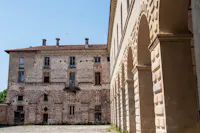 Il castello Visconteo Mediceo di Melegnano rappresenta il monumento simbolo della città, con cui ha un rapporto dialettico da quasi 800 anni. Prima come receptum (1243), poi rifugio per la popolazione nel periodo delle lotte tra i liberi Comuni e l’Impero; fu corte della dinastia viscontea che,soprattutto con Bernabò (1350), gli imprime l’aspetto possente e arcigno che neppure gli interventi di epoca Medicea (XVI secolo) riusciranno a scalfire. Questo maniero, nel quale si frange il sogno di grandezza di Gian Galeazzo di unificare l’Italia Centro-Settentrionale sotto il suo scettro (1402) e dove inizia il breve dominio degli Sforza (1449), vedrà poi l’arrivo del Medeghino che farà le fortune sue e della famiglia con “il mestiere delle armi”, ma il “Perdono” concesso da papa Pio IV riconcilierà la città con la dinastia medicea. Anche nei lunghi anni di oblìo il castello troverà modo di vivere con la città ospitando il Comune e la Civica biblioteca.