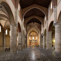 All'interno è possibile osservare i pavimenti a mosaici caratteristi dell'edificio realizzati dai Cosmati, celebre famiglia di marmorari romani (da cui deriva l'aggettivo cosmatesco, utilizzato per il identificare lo stile).