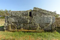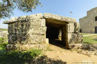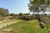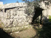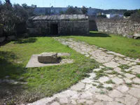 La cittadina di Patù sorge nell'estremità di Capo di Leuca, lembo meridionale della penisola salentina su un declivio tufaceo digradante: ha origini antiche che risalgono al X secolo, quando la vicina Vereto venne distrutta dei Saraceni, costringendo gli abitanti superstiti a spostarsi altrove e a fondare un nuovo insediamento. A causa di questo episodio, una delle possibili etimologie del nome Patù viene ricondotta alla parola greca pathos, dolore, in memoria del dolore dei veretini. Centopietre è un monumento funebre situato all’interno della città, di fronte alla chiesa di San Giovanni Battista. Il nome deriva dal fatto che il monumento venne costruito con esattamente cento blocchi di pietra di tufo (oggi 99) provenienti dall’antica Vereto, con cui la storia della sepoltura è legata. E’ databile al IX secolo come mausoleo per le spoglie del generale Geminiano, messaggero di pace trucidato dai saraceni. Centopietre ha unacostruzione singolare di forma rettangolare, la copertura è un tetto a due falde; l’interno presenta diversi strati sovrapposti di affreschi con soggetto sacro, risalenti al XIV secolo. In particolare sono raffigurati tredici Santi di origine orientale, presentati secondo uno schema di ispirazione bizantino, che testimonia la trasformazione, in epoca medievale, del mausoleo in chiesa paleocristiana. Nel 1873 Centopietre fu classificato dal governo come Monumento Nazionale di seconda classe. Per valorizzarlo e preservarlo i cittadini l’hanno votato nell'edizione 2016 del censimento I Luoghi del Cuore.