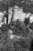 Articolato su di una collina prevalentemente rocciosa costituita da tre poggi, quello di S. Maria - dominato dall’omonima chiesa - quello centrale della Serra e quello più alto della Motta, il centro storico di Rivello è caratterizzato da un insediamento compatto costituito da una forte densità edilizia. Rivello appartiene a quel patrimonio storico-culturale definibile in maniera assai efficace con l’espressione “presepi d’Italia”. Risulta costituito prevalentemente da un’architettura “povera” ed il suo valore risiede, piuttosto che in testimonianze di spiccata o eccezionale qualità artistica e architettonica, nell’elevato grado di coralità e d’insieme di un’architettura di carattere minore. Una serie di elementi, che divengono principi costitutivi e compositivi dello spazio urbano, si ripetono nell’abitato come delle costanti, dando origine ad un organismo distinto e sicuramente irripetibile. Nella sua particolare posizione collinare, al centro della valle del Noce e nella sua posizione dominante, il centro storico di Rivello si configura come punto emergente all’interno del paesaggio. Il tessuto urbano, chiuso e compatto, sorge come integrazione e continuazione stessa del luogo su cui insiste: l’architettura degradante che segue la pendenza del suolo e l’andamento delle stradine interne che ricalcano le curve di livello o la linea del crinale, sono tutti elementi che esprimono una cultura del vivere e dell’abitare che fruisce in modo saggio e rispettoso del suolo e dell’ambiente. L’intero abitato si focalizza attorno alle tre chiese di S. Nicola, di S. Barbara e di S. Maria – poli catalizzatori nella crescita della città – e trova il suo ruolo civico e rappresentativo in alcuni spazi tipici quali la piazza principale ed il corso che attraversa l’intero abitato da sud a nord. L’intero Centro Storico risulta dall’aggregazione di più parti concluse in sè, che hanno definito - anche cronologicamente - la crescita dello stesso paese. Quello più antico, di origine normanna (X – XI sec.), è certamente quello centrale, probabilmente cinto da mura difensive il cui andamento potrebbe desumersi dalla conformazione chiusa e concentrica (a spirale) del tessuto edilizio - tipico dei borghi di fondazione medioevale - ed anche dalla presenza di numerosi passaggi archivoltati, relativamente alla forma articolata e ridotta dei singoli fabbricati. A testimonianza di una vitalità religiosa ormai scomparsa, il solo Centro Storico di Rivello può contare la presenza di 18 chiese e cappelle, di cui due parrocchiali (S. Maria Maggiore del Poggio e S. Nicola, che per secoli si sono contese la “matricità”) ed una annessa al Convento dei Frati Minori Osservanti intitolato a S. Antonio di Padova.