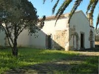 Al lato destro del portone d’accesso si trova quello che probabilmente era l’ingresso originario dell’edificio sacro, oggi murato.