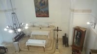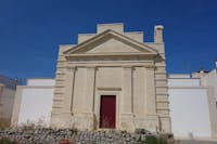 La legge borbonica che, rifacendosi all’editto di Saint Cloud, vietava la sepoltura nelle chiese era del 1817, ma bisognerà aspettare altri vent’anni, ed in particolare la tragica epidemia di colera del 1837, per convincere la municipalità sulla necessità di costruire un nuovo cimitero. La progettazione venne affidata all’architetto Giovanni Memola di Acquaviva, mentre l’esecuzione fu fatta in economia dall’amministrazione. I lavori iniziarono nel 1840 e terminarono otto anni dopo; parteciparono alla realizzazione i migliori capimastro dell’epoca: i Rossi e i Pasciolla sotto la guida del grande Pietrantonio Schettini. Nonostante la legge, che prevedeva già la realizzazione di cimiteri per sola inumazione, si riuscì a derogare scegliendo la tecnica della tumulazione. La chiesa, sotto il titolo di S. Francesco da Paola è a cupola con un solo altare, sul lato destro sono posti la sagrestia e l’obitorio mentre sul lato sinistro è la stanza del custode. Alle spalle della chiesa ci sono le bocche dei 16 sepolcri e sui lati i cippi ed i cenotafi. Due sepolcri furono utilizzati per l’epidemia di colera del 1865-66. Il cimitero è rimasto in uso sino al 1910, quando venne costruito il nuovo camposanto, questa volta, finalmente, per inumazione.