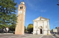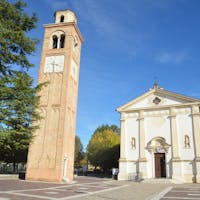 La chiesa è il principale luogo di culto della città e le sue origini risalgono al XII sec. Venne consacrata nel 1490 e dal 1493 al 1797 fu affidata ai monaci benedettini di Monte Oliveto che la abbellirono con pregevoli opere artistiche. L’attuale parrocchiale venne costruita nel 1750. La facciata è decorata con due sculture quattrocentesche di Giovanni Buora raffiguranti i santi patroni del quale è presente all’interno un’altra statua rappresentante la Madonna col bambino. All’interno vi sono inoltre numerosi affreschi di Gaspare Diziani (pittore veneto contemporaneo di Giambattista Tiepolo ed entrambi allievi di Gregorio Lazzarini), una tela che ritrae l’Incoronazione della Vergine di Vittore Belliniano (1524) e una pala d’altare di Odoardo Fialetti (1622). La chiesa custodisce anche un importante organo realizzato da Gaetano Callido che rappresenta una delle opere più preziose dell’organistica veneta. Il campanile è stato ricavato da un’antica torre di avvistamento ed è uno degli ultimi resti del castello di Orgnano, abbattuto nel XVI sec. Ospita tre campane più’ un campanello di richiamo prodotte dall’antica fonderia De Poli di Vittorio Veneto e dedicate alla Madonna del Rosario, ai santi patroni e a Sant’Antonio