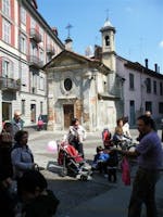 Questa piccola chiesa posta nel punto d'incontro di più strade (Via Guasco, Via Plana, Via Canefri, Via Boidi) è interessante in quanto vi è ragione di credere che il piccolo edificio sia stato eretto in occasione di una delle numerose epidemie di peste abbattutesi sulla città, forse alla fine del Quattrocento. L'originaria intitolazione a S. Rocco, al quale era tradizionalmente legato il culto espiatorio dei contagi, rafforza questa ipotesi insieme alla stessa ubicazione della nostra chiesetta, in quanto era consuetudine erigere cappelle votive contro il morbo ai crocicchi delle strade, per consentire ai sacerdoti di celebrare funzioni religiose anche per gli ammalati isolati nelle case e per testimoniare ai passanti, in modo visibile, la riconoscenza della collettività per il cessato flagello La prima testimonianza di un'epidemia di peste ad Alessandria è del nel 1371 quando la peste decima la popolazione, tanto che la città sembra morta: nella Piazza Maggiore (Piazza della Libertà) e anche per le contrade si vedeva l'erba alta come nei prati; Anche nei secoli successivi Alessandria viene colpita da epidemie di peste. Le cronache ci presentano un quadro raccapricciante: i cadaveri insepolti richiamano branchi di lupi che penetrano nelle case e divorano bambini incustoditi; il Comune offre premi in denaro a chi catturi e consegni un lupo vivo o morto; finita la peste, i lupi scompaiono. Ma la peste più importante che si ricordi è quella del 1630-1631, la peste del Manzoni Come si combatteva contro questo morbo? La fuga è il rimedio più ragionevole ed efficace. I dotti hanno sempre consigliato di fuggire presto, lontano e per lungo tempo. Oltre alla prassi dell'isolamento e della quarantena, si stabilivano diverse norme, dal divieto di entrare in città all'obbligo di denunciare i casi sospetti, dall'interdizione dal frequentare i luoghi in cui si erano manifestati sintomi di contagio alla segregazione degli emarginati (pazzi, criminali, stranieri, mendicanti, indigenti); a volte si arrivava addirittura all'espulsione dei poveri, identificandosi la povertà come causa principale della peste; spesso i sospetti venivano forzatamente tradotti in lazzaretti e in ospedali aventi più carattere di carceri che di luoghi di cura. Se poi consideriamo le fonti più ricche quelle della peste del 1630 possiamo notare come le decisioni del consiglio comunale sono uno sconcertante esempio d'incapacità a fronteggiare la situazione. L'elemento religioso-espiatorio domina qui come altrove: si invocano i SS. Baudolino e Valerio, patroni della città e si intensificano le pratiche di devozione alla Madonna e ai Santi Sebastiano e Rocco, poichè è detto in una seduta del Consiglio Comunale che nel contagio nessun rimedio è più utile che quello di rivolgersi alla Madonna e ai santi. Si erigono cappelle e chiesette votive e si organizzano processioni a cui partecipavano tutti, uomini, donne, bambini di ogni ceto sociale. Inoltre, nelle prime settimane dall'inizio del contagio, manca al Comune la necessaria tempestività di interventi anche a causa delle reiterate assenze dal consiglio di alcuni membri che, per paura di contrarre la malattia, non osano uscire di casa. Per raggiungere il quorum e poter varare le opportune misure di difesa, si minaccia l'uso della forza o i consiglieri che non ottemperano ai loro obblighi d'ufficio e si inviano degli armati a prelevarli a domicilio. Il Consiglio comunale chiede l'autorizzazione a Milano ad organizzare un'azione di vigilanza sanitaria per impedire l'ingresso in città di persone e cose provenienti dalle zone colpite e a ricoverare i militari infermi in un ospedale fuori dell'abitato. Da Milano si inviano disposizioni sull'attuazione della barriera sanitaria, ma si la boccia la proposta di collocare un ospedale militare fuori le mura: in sostanza Alessandria può chiudere le porte ai civili ma non ai militari. Così quanto si temeva puntualmente avviene: dalla fine di giugno all'ottobre 1630 la peste infuria i