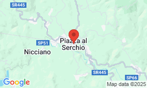 Piccola chiesa con torre campanaria su una roccia all'interno del piccolo borgo di Petrognano.