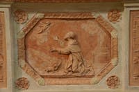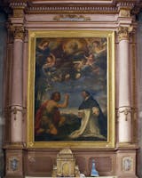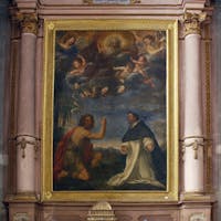 Il 5 dicembre 1605 il cardinale Paleotti concesse alla Compagnia del Santissimo Rosario di Budrio di costruire in paese una chiesa dedicata a S. Domenico a cui era attribuita l’invenzione del rosario. La Compagnia, costituitasi nel 1573 su richiesta dei frati Servi di Maria di San Lorenzo al generale dei Domenicani, fino alla concessione era stata costretta a vagare da una sede all’altra. Da subito cominciarono ad affluire offerte, il progetto venne quindi affidato a Giulio dalla Torre, prestigioso architetto bolognese. I lavori procedettero spediti tanto che il 17 agosto 1615 la chiesa, terminata, fu aperta “con gran festa e allegrezza”. Negli anni successivi la struttura architettonica subì modifiche con l’aggiunta del portico nel 1680. La chiesa si arricchì di ornamenti commissionati dalla compagnia e da ricche famiglie. Oggi, vista la chiusura della chiesa dopo la caduta di calcinacci a causa del terremoto del 2012, ci si deve limitare ad ammirare le quattro statue di santi domenicani (Domenico, Tommaso d’Aquino, Caterina da Siena e Rosa da Lima) in nicchie dal vivace ornato barocco sotto il portico ai lati del portale d’ingresso. Nella volta del portico, ad opera della stessa mano, è ammirabile un rilievo in stucco di una Madonna con il bambino in gloria tra angeli. Sono tutte opere inseribili nella tradizione della decorazione plastica in stucco, particolarmente fiorente in Emilia nel Settecento. Tra le pale d’altare presenti all’interno vanno sottolineate due pregevoli opere di Alessandro Tiarini: la Madonna del Rosario con Santi domenicani e misteri del rosario, sull’altare maggiore, e l’Assunzione della Vergine in cielo, in una cappella laterale. Nelle altre cappelle laterali sono da segnalare il Risanamento di Napoleone Orsini di Giuseppe Carlo Pedretti, il Padre eterno in gloria con i santi Giovanni Battista e Pietro Martire di Francesco Albani e San Vincenzo Ferrer di Ubaldo Gandolfi. La chiusura e l’abbandono dell’edificio fanno temere per gli otto altari in cotto e stucco, esemplare testimonianza dell’arte decorativa del Settecento bolognese, restaurati nel 2006. Nessun intervento di restauro è stato invece apportato nel corso del tempo alle pale d’altare in particolare alla Madonna del Rosario di A. Tiarini le cui condizioni apparivano già molto problematiche prima della chiusura del 2012. Abbiamo deciso di promuoverla come luogo del cuore per richiamare l’attenzione su un bene che, anche se parte della nostra storia e della nostra identità, è stato in parte dimenticato in questi ultimi anni, correndo gravi rischi per la sua conservazione.