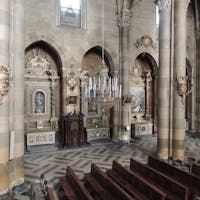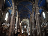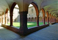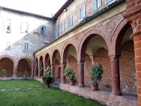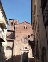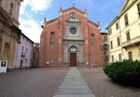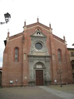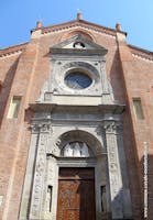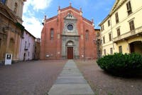 Costruita dai padri domenicani, la Chiesa di San Domenico è legata alla scelta del marchese Guglielmo VIII Paleologo di eleggere Casale a sede della corte monferrina e all’istituzione della diocesi casalese. Iniziata nel 1472 in stile gotico, e consacrata nel 1513, l’edificazione prosegue fino ai primi anni del Cinquecento quando, sulla facciata, si sovrappone un portale rinascimentale ad opera di maestranze lombarde. Tre navate, sorrette da pilastri che reggono volte a crociera, scandiscono lo spazio interno impreziosito da numerose opere di pregio come le acquasantiere cinquecentesche e l’affresco staccato della Madonna con Bambino tra i santi Domenico e Giovanni Battista di ambito spanzottiano. Molto alterato il settore absidale dall’intervento del 1745 di Francesco Ottavio Magnocavalli e relativa ridecorazione. All’ingresso importanti acquesantiere di cui quella di destra con medaglione raffigurante Maria di Serbia, forse di Matteo Sanmicheli. A destra si conserva anche il monumento funerario di Benvenuto San Giorgio sempre del Sanmicheli. Moltissime le opere d’arte, tra cui la pala d’altare di Guglielmo Caccia detto il “Moncalvo”, della “Esaltazione della Croce”; nel transetto il grande quadro di Guglielmo Crosio che rappresenta “La battaglia di Lepanto”, del 1626; quindici tele con “I misteri del Rosario”, realizzate all’inizio del Seicento da Giorgio Alberini, nonché le tele più preziose, quelle di Pietro Francesco Guala che realizza “La resurrezione di Felice Orsini” e “Il miracolo del libro”, collocate nel presbiterio. Notevole anche la sacrestia, sempre su progetto di Magnocavalli, con mobilio ligneo di grande pregio. A destra della chiesa si entra nel chiostro, di estremo rigore compositivo, con salone quattrocentesco sul fianco.