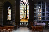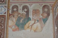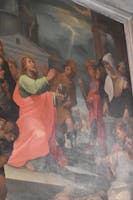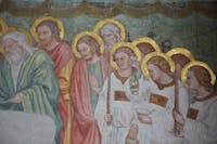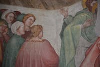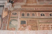 La decorazione dell'interno della chiesa fu affidata ai migliori pittori italiani dei secoli XIII e XIV. Tra questi Giunta Pisano, Cimabue e Giotto le cui pale d'altare sono oggi conservate al Louvre, Taddeo Gaddi, Jacopo di Mino del Pellicciaio, Taddeo di Bartolo, Niccolò di Pietro Gerini, i cui resti degli affreschi sono ancora visibili oggi.