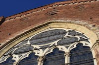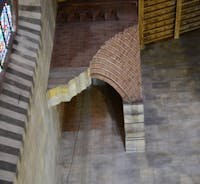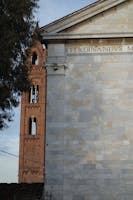 La chiesa, così importante da avere dato il nome ad uno dei quattro quartieri del centro storico, è inoltre per grandezza la seconda di Pisa dopo la cattedrale. Il suo maestoso interno ad una navata con transetto a sala e sette cappelle terminali, rischiarato da magnifiche vetrate monumentali, fu iniziato nel 1261 sotto la Guida di Giovanni di Simone, lo stesso architetto ed ingegnere a cui, secondo gli studi più recenti, fu affidato il completamento, dopo cento anni di interruzione, della celebre Torre Pendente. La chiesa dunque si contraddistingue per le sue dimensioni imponenti, per le proporzioni perfette che la rendono esempio raro di edificio proto- rinascimentale, per il campanile pensile - capolavoro assoluto di ingegneria medioevale - e per il fatto di costituire un esempio paradigmatico dello stile architettonico francescano. Negli Statuta del 1260, (anno prima della costruzione della chiesa), infatti, San Bonaventura indicava le caratteristiche architettoniche da rispettare per la costruzione delle chiese francescane.