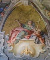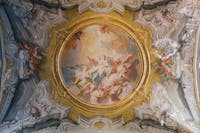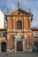 La splendida facciata in cotto e marmo della chiesa di San Maurizio, già dedicata alle Sante Margherita e Caterina, appare serrata tra gli edifici di recente costruzione, senza perdere tuttavia il suo fascino. La sua fama s’intreccia alle vicende di Suor Virginia Maria De Leyva, la monaca di Monza che, nel 1589, a soli quattordici anni, prese il velo nel monastero di clausura annesso alla chiesa. Dell’antico monastero, soppresso nel 1785, rimangono solo alcune porzioni murarie, mentre l’originaria chiesa quattrocentesca venne totalmente riedificata tra il 1736 e il 1738. Riaperta solo nel 1881, l’aula ecclesiale vanta un apparato decorativo e pittorico di rara uniformità, incentrato sui maggiori interpreti del barocchetto lombardo: le prime tre campate della volta sono opera di Carlo Innocenzo Carloni (1740-42), con quadrature di Giuseppe Castelli e del Perucchetti, mentre alle pareti si conservano tele di Antonio Maria Ruggeri, Ambrogio Brambilla, del monzese Giambattista Gariboldi e di Francesco Corneliani.