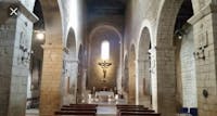 La struttura presenta i caratteri delle chiese di epoca romanica: l'essenzialità, poche aperture è in particolare la presenza di Archetti pensili.La facciata in pietra a vista,è suddivisa in tre zone,il portale in pietra sovrastato da una grande finestra.Sulla porta al centro del fianco esterno c'è una Lunetta con un bassorilievo che rappresenta la Madonna con in braccio il bambino. A destra c'è uno stemma Francescano, e a sinistra un motivo floreale .L'interno della chiesa è di tipo basilicale,a tre navate con tre absidi,la navata centrale più alta delle laterali.Le navate sono divise tra loro da 12 pilastri quadrati privi di basi con Capitelli romanici a forma di piramide tronca rovesciata, i quali sostengono archi a tutto sesto.