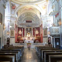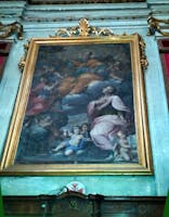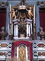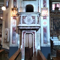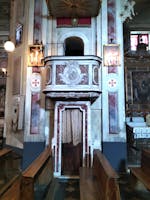 A sinistra dell’abside e riservato ai marchesi, si trova il matroneo: vi si accede da un ingresso posteriore su cui ancora domina lo stemma degli Adorno. In attesa di restauro, ma ancora ben conservato, è l’organo: fu costruito nel 1856 da Camillo Guglielmo Bianchi, uno dei migliori organari dell'800.