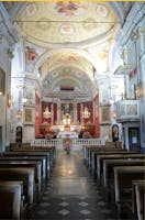 A metà della collina su cui sorge il Castello Adorno si erge, a tutti ben visibile, la Chiesa di San Pietro. Dal suo sagrato, nel riverbero della luce calda riflessa dalla facciata, ci possiamo proiettare idealmente sulla valle del fiume Orba. La prima testimonianza storica dell'esistenza di una piccola chiesa nella zona di Silvano Superiore risale al 1308, data della promulgazione degli Statuti di Silvano. Era posta poco sopra il castello dei Marchesi del Bosco ed era sotto la giurisdizione della Pieve di Prelio (oggi Santa Maria della Neve in località Pieve). Alla fine del '400 i Marchesi Adorno, nuovi titolari del feudo, mentre costruiscono più in alto il loro nuovo castello, ottengono da Papa Innocenzo VIII il giuspatronato sulla Pieve di Prelio trasferendone le prerogative alla chiesa di San Pietro che diventa Chiesa Parrocchiale, sede del Pievano e “loro” chiesa. L’ultima degli Adorno, Maddalena, sposa il nobile pavese Luigi Botta e dà inizio alla dinastia dei Botta Adorno. I marchesi Botta Adorno e gli Arcipreti di San Pietro danno inizio all'opera di restauro e successivamente di ampliamento e abbellimento della chiesa che si concluderà nella seconda metà del 1800. La chiesa attuale, ampliata a fine ’700 con pianta a croce latina, conserva sempre un’unica navata, ma tutta la parte del transetto e dell'abside risulta sopraelevata rispetto ad essa. All'incrocio dei due bracci troviamo una splendida cupola. La vista dall'esterno rivela una struttura solida ed articolata, in cui la forma quadrata caratterizza i ritmi volumetrici del transetto e del tiburio. All'interno le volte risultano tutte affrescate e riccamente decorate con momenti della vita di San Pietro ad opera di Pietro Ivaldi, pittore molto famoso nell’ Alto Monferrato, originario di Ponzone e sordomuto dalla nascita. A sinistra dell’abside e riservato ai marchesi, il matroneo era ed è accessibile da un ingresso posteriore su cui ancora domina lo stemma degli Adorno. A sinistra dell’abside e riservato ai marchesi, il matroneo era ed è accessibile da un ingresso posteriore su cui ancora domina lo stemma degli Adorno. In attesa di restauro, ma ancora ben conservato, è presente un imponente organo costruito nel 1856 da Camillo Guglielmo Bianchi, uno dei migliori organari del '800.