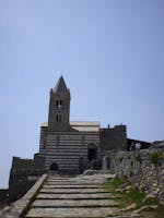 costruita sullo sperone roccioso all’estremità del paese che da sul mare aperto, la chiesa fu fondata sugli antichi resti del tempio pagano dedicato alla dea Venere Ericina . La parte più antica, alla destra dell’ingresso, è ancor oggi identificabile grazie alla presenza della pavimentazione circolare realizzata con sottili lastre di pietre a marmi di vario genere; lavori di modifica, ad opera dei genovesi, durano dal 1256 al 1277 intervenendo per quanto possibile sul ristretto spazio a disposizione.