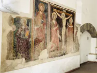 Gli affreschi, pertanto, fanno parte di un ciclo pittorico nient’affatto omogeneo né unitario, sia sotto il profilo temporale che sotto quello della committenza. Essi, infatti, riproducono temi e soggetti cristiani completamente diversi tra loro, ovvero santi vari e momenti religiosi e/o scene tutte senza una logica unitaria .