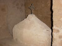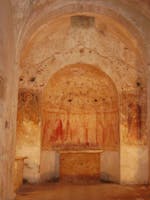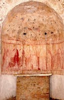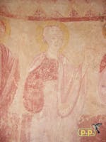 Nell’abside, invece, da quanto emerge dalle ricerche più recenti, vi è raffigurata una teoria di santi (sia uomini che donne), con al centro una figura femminile, anch’essa ornata di un’aureola e recante un unguentario, che potrebbe essere identificata come una rappresentazione di Maria Maddalena.
