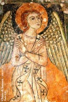 Ai due lati dell’abside vi è raffigurata l’Annunciazione: il visitatore che si appresta ad entrare nel presbiterio, può ammirare alla sua sinistra una bella figura dell’arcangelo Gabriele, avvolto da un leggero panneggio che sembra mosso dal vento, e alla sua destra la Vergine, adorna di preziosi ornamenti, con il manto nero, e un libro nella mano sinistra.