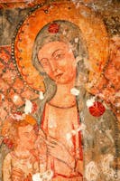 Su un lato del presbiterio, inoltre, è collocato un secondo altare devozionale in corrispondenza di un affresco in cui è raffigurata la Vergine nell’iconografia della “Galaktotrefousa”, ovvero rappresentata nell’atto di allattare il Bambino, il quale reca in una mano un melograno, mentre poco a lato un altro affresco rappresenta, in una posa rigidamente frontale, Sant’Antonio Abate, una delle figure più importanti dell’ascetismo cristiano antico.