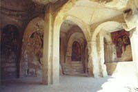 Si tratta di una chiesa di raffinatissima architettura, forse il più pregevole esempio di architettura rupestre di epoca medioevale. Ciò che, però, è diverso dagli altri tempi è il soffitto che presenta volte a schiena d’asino, a stella, a vela e a cupola lenticolare.