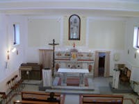 La chiesa rurale è molto semplice e piccola: possiede una pianta rettangolare a capanna, con intonaco bianco. La facciata ha una finestra e un portale rettangolare. Il campanile è una piccola torretta che ha le caratteristiche del tipico campanile a vela, con due archi laterali. L'interno è a navata unica.