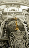 La devozione alla Madonna dei Bagni ha, certamente, un origine molto più antica di quanto i documenti in possesso possano dirci, Mons. Ammirante nel 1877 parla di un culto già vivo nel 1500 e testimonianze cartografiche confermerebbero tale circostanze, ma anche la tradizione orale degli antichi canti popolari lasciano scivolare più indietro l’inizio del culto, in pieno medioevo. Culto che trova la sua origine ne la Fonte Miracolosa, il cosi detto “Fuoss ‘e Vagne”, è questo il luogo dove inizia la nostra storia, la storia più bella. L’Abate Pacichelli nel 1690 così scriveva: “ …Nei Vespri dell’Ascensione del Signore nei quali con meraviglia nasce, e poi in poche ore si secca un’acqua giovevole a purgare le cuti da varie specie di mali…” ; così fedeli e pellegrini, ricchi di fede e speranza, accorrevano nei giorni della Festa per lucrare grazie e guarigioni. L'attuale Tempio è costruito in stile tardo barocco ed è andato a sostituire una più antica chiesa che ivi sorgeva, la facciata imponente e maestosa si mostra in tutta la sua eleganza e tre ampie fornici danno ingresso al pronao. L'ampio interno a tre navate, riccamente decorato con lesine e capitelli classicheggianti manifestano una ricerca del bello non comune ad altri luoghi di culto, sono presenti affreschi di straordinaria fattura che coprono l'interezza della volta centrale e del presbiterio, opera di artisti come Gaetano D'Agostino e Salvatore Postiglione. Il presbiterio di assoluta bellezza è interamente ricoperto in mosaici di marmo del settecento, così come l'altare maggiore di chiara fattura napoletana. Al centro si staglia la pala d'altare datata 1639 che rappresenta la Madonna dei Bagni e il Miracolo della Fonte, mentre ai lati due tele di notevoli dimensioni raccontano la nascita della Vergine e la presentazione al tempio della Stessa, entrambe opera di Giovan Battista Lama del 1723. Tutto l'insieme è un'esperienza sensoriale e intima da non perdere dove fede e arte si uniscono diventando un tutt'uno.