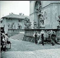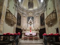 La vecchia chiesa prepositurale settecentesca, situata nel centro storico di Ponte San Pietro, è dedicata a San Pietro. Ricostruita dalle fondamenta in forme barocche, sostituisce un più antico edificio. Notevole l'altare maggiore, realizzato su progetto di Giacomo Caniana, mentre il coro conserva tre tele di Giovanni Carobbio (1738) fra cui la "Caduta di Simon Mago". Francesco Camuzio ha lavorato agli stucchi delle cappelle dal 1719 al 1730. I quattro altari laterali sono frutto di una risistemazione in forme neoclassiche risalente al 1841. Due sono le importanti opere superstiti del preesistente edificio: la statua lignea vestita della Madonna del Rosario e la pala di Pietro Ronzelli raffigurante la "Madonna col Bambino e sant'Anna" (1604). Affreschi di Luigi Galizzi arricchiscono la volta e di sua mano sono i 15 “Misteri” del Rosario. Le nove statue dello scenografico sagrato furono scolpite negli anni 1745 e 1748 da Antonio Maria Pirovano e rappresentano la più famosa opera del maestro nonchè la principale testimonianza scultorea del barocchetto a Bergamo. Per la natura stessa del manufatto si rende ormai necessario un tempestivo restauro che salvi il complesso da un degrado inarrestabile.