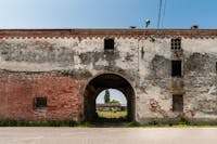 Il primo nucleo risale al 1486; la struttura è articolata come un castello, con un cortile centrale quadrangolare attorno a cui si sviluppano i corpi di fabbrica: quattro palazzotti con funzione residenziale, detti colombaroni. Nel XV secolo furono realizzati ulteriori edifici abitativi per i salariati e nell'Ottocento si aggiunsero una villa padronale e la chiesa di Sant'Antonio.