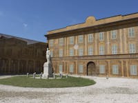 Giovanni Antonio Delavo, per onorare la devozione del padre grande estimatore di Napoleone I, acquistò alcuni terreni, teatro della vittoria dei francesi e della liberazione dell’Italia dal controllo austriaco, per inaugurare nel 1847 il primo museo napoleonico al mondo. Per le decorazioni prospettiche esterne Delavo chiamò il maestro lombardo Gabetta, mentre agli interni lavorarono Paolo Maggi e, secondo A. Valle, il pittore lomellino Sperati. A Francesco Mensi fu commissionato il grande dipinto con l’Apoteosi di Napoleone I di cui oggi rimane solo il disegno preparatorio. La Villa si innalza su tre piani: al piano terreno e al primo troviamo l’esposizione permanente del Marengo Museum, al secondo stanze destinabili a mostre temporanee ed esposizioni in anteprima di iniziative dei Comuni appartenenti all’area vasta di Marengo e a cura dell’Unione Giornalisti e Comunicatori Europei. La parte moderna adiacente, costruita sull’antico cortile del Castrum tra gli anni 2008 e 2010, presenta un Foyer per l’accoglienza degli ospiti e al primo piano un Auditorium, da 100 posti a sedere, per eventi e convegni che beneficiano altresì di una zona uffici e stanze per corsi e riunioni. Particolarmente significativa è la parte verde dell’intero sito e il parco piantumato da alberi secolari di 55 mila metri quadri con l’ossario dedicato ai prodi di Marengo e il busto del Generale Louis Charles Antoine Desaix. L’intera area esterna e la villa ospitano come sito di accesso agli ambienti storici una piramide, voluta da Napoleone stesso, in memoria delle gesta compiute in Egitto con soldati e sapienti, che scoprirono la Stele di Rosetta, e in memoria di tutti i caduti nelle varie battaglie. Villa Delavo ospita nel cortile d’onore un’imponete cancellata in ferro battuto in stile imperiale e la statua dedicata a Napoleone Primo Console realizzata dallo scultore Benedetto Cacciatori.