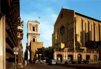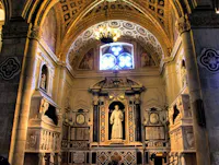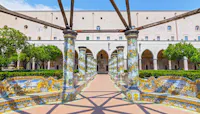 Il complesso francescano di Santa Chiara, composto da Monastero, Basilica, Convento, fu costruito su commissione di Roberto d'Angiò e di sua moglie Sancia di Maiorca tra il 1310 ed il 1328. I sovrani, entrambi devoti a San Francesco d'Assisi e a Santa Chiara, vollero costruire una cittadella francescana che accogliesse nel monastero le Clarisse e nel convento i Frati Minori. La chiesa, progettata dall'architetto e scultore Gagliardo Primario in forme gotiche, subì importanti trasformazioni alla metà del '700 quando l'intera struttura fu rivestita da una fastosa ornamentazione barocca conservatasi fino al terribile incendio del 1943. Il restauro ne ripristinò le forme gotiche e diede adito ad un ripensamento degli spazi secondo i dettami dell'ordine francescano. Nel presbiterio si conservano i sepolcri di Re Roberto, il più grande monumento funebre per dimensioni del medioevo italiano, di Carlo Duca di Calabria, della sua seconda moglie Maria di Valois. A destra del presbiterio il Coro delle Monache, opera di Leonardo di Vito, è uno dei più importanti monumenti gotici a Napoli. A rendere celeberrimo il complesso di Santa Chiara è inoltre il meraviglioso Chiostro Maiolicato delle Clarisse, un raffinato laico giardino rustico decorato di riggiole maiolicate di Giuseppe e Donato Massa i cui colori, celeste, giallo, verde sono in continuità con il cielo, la vite, i limoni che li vi crescono rigogliosi.