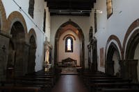 Ledificio di culto si presenta con una pianta a navata unica, con laggiunta postuma di una seconda navata, più piccola, lungo il lato sinistro. La realizzazione di edifici ad aula è tipica delle strutture ecclesiastiche francescane. Il periodo di edificazione della struttura, poi, coinciderebbe con la diffusione della cultura artistica angioina a Napoli e nel territorio dominato dalla dinastia regale francese. Limpianto originario a navata unica coperta a tetti e la sua conclusione attraverso unabside quadrangolare, anchessa coperta a tetti, rendono la struttura alquanto semplice, nonostante laggiunta di quattro altari, tra i secoli XVI e XVIII, in prossimità della zona absidale. Allinterno della chiesa spiccano, poi: larco trionfale a sesto acuto, che imposta su pilastri semicircolari con capitelli fitomorfi, il tutto in pietra grigia; la monofora sulla parete frontale dellabside ad arco acuto e profilo polilobato, simile allapertura posta nellabside della cattedrale di Carinola, con nodi trasversali nella zona mediana e allimposta che ne interrompono lascensionalità; le tre cappelle ricavate nello spessore della parete destra.