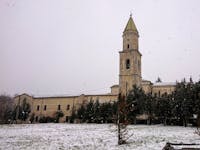 Il convento di San Francesco a Folloni fu fondato dallo stesso San Francesco d'Assisi, di passaggio verso il santuario di San Michele sul Gargano, nel gennaio 1222. Sembra che il Santo avesse lasciato alcuni suoi confratelli nel bosco infestato dai briganti perché vi realizzassero la prima chiesetta, dedicata alla Santissima Annunziata. Il primo edificio duecentesco doveva trovarsi dove ora si trova il corpo di fabbrica che ospita le celle dei frati. Nel XV secolo venne realizzata la seconda chiesa, a navata unica con numerose cappelle laterali. Tra la chiesa duecentesca, integrata nel convento, e quella quattrocentesca venne poi edificato il refettorio, attuale biblioteca. L'odierno complesso architettonico è frutto di un rinnovato intervento edilizio della metà del Settecento, resosi necessario in seguito al terremoto del 1732.