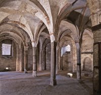 La cripta di Sant’Eusebio, oggi isolata in piazza Leonardo da Vinci, è ciò che rimane di una chiesa di probabile fondazione longobarda. È, infatti, riconosciuta come la cattedrale ariana della città, ricordata da Paolo Diacono negli anni del re Rotari (636-652) e ridedicata a sant’Eusebio, fiero nemico dell’eresia ariana, dopo la conversione della popolazione longobarda all’ortodossia cattolica, nella seconda metà del VII secolo. L’edificio di culto, ricostruito in forme proto romaniche nell’XI secolo, variamente rimaneggiato tra Cinque e Seicento, poi ricostruito nel Settecento, fu raso al suolo nel 1923 per fare spazio al Palazzo della Posta.