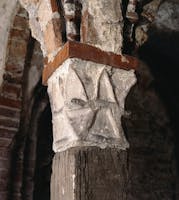 Risulta problematica la datazione dei capitelli delle colonnine. Alcuni presentano, infatti, una struttura ad alveoli triangolari; si è pensato che essi fossero originariamente destinati a ricevere riempimenti colorati in mastice o stucco, così da imitare la produzione orafa cloisonnée – cioè con campiture di smalti tra linee metalliche in oro, argento o rame – di chiara matrice barbarica. Si è perciò pensato a una datazione all’età longobarda, ipotizzando un possibile reimpiego dall’edificio più antico. Tuttavia, in anni più recenti, è stata sostenuta l’ipotesi che possano risalire alla ricostruzione dell’undicesimo secolo.