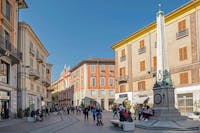 Nel cuore della città troviamo l'*Obelisco di Piazzetta della Lega*, punto di ritrovo iconico per i cittadini, e la*Galleria Guerci*, elegante passaggio coperto con negozi storici, che collega la piazzetta a*Piazza Garibaldi*, uno dei centri nevralgici del commercio cittadino.