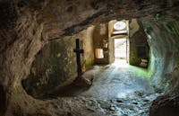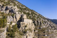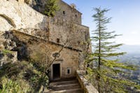 L'eremo, risalente al XIII secolo, è arroccato sulla parete rocciosa del Morrone che sovrasta Sulmona. È un luogo che colpisce non solo per la testimonianza storica, artistica e religiosa ma, anche per la natura selvaggia e incontaminata che lo circonda. Dal suo straordinario belvedere la vista domina la magnifica abbazia di Santo Spirito a Morrone, il più importante insediamento della congregazione dei Celestini, lo storico campo di prigionia 78 e l'intera Valle Peligra.