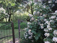 Giardini, al plurale, perché somma di più spazi dai nomi suggestivi pensati e voluti distinti pur nella continuità che li raccoglie in un unicum: giardino delle erbe, della costa di casa, giardino-frutteto, bosco-giardino, orto-giardino, radura delle lucciole, giardino della casa che non c’è, prato del ciliegio…